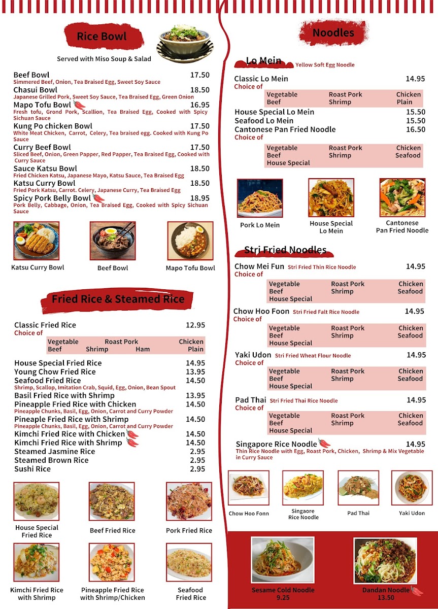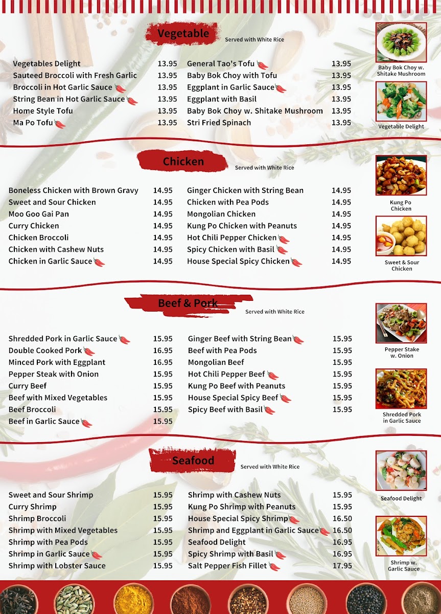 The highlight is undoubtedly the chef’s specials, featuring Crispy Orange Beef and General Tao's Shrimp, both beautifully prepared to tantalize the palate. For noodle lovers, the selection is extensive—from Chow Ho Foon to Pad Thai, each dish is crafted with fresh ingredients and bold flavors.